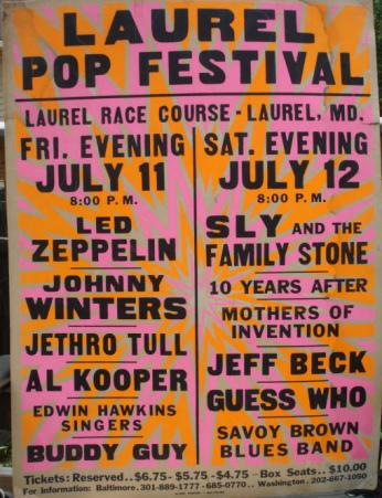 - ^ Arent, Earl. “Bonfires Curtail Pop Festival at Laurel.” Baltimore Sun. July 14, 1969.