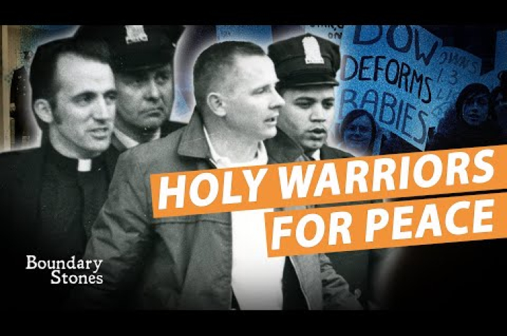 Painting of George Washington on white horse with British soldiers walking alongside. Groups of soldiers stand on either side of the frame.